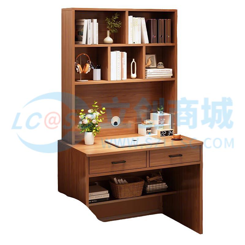 荣将实木书桌书架一体式办公桌电脑桌家用工作台写字桌80cm桌+牛角椅