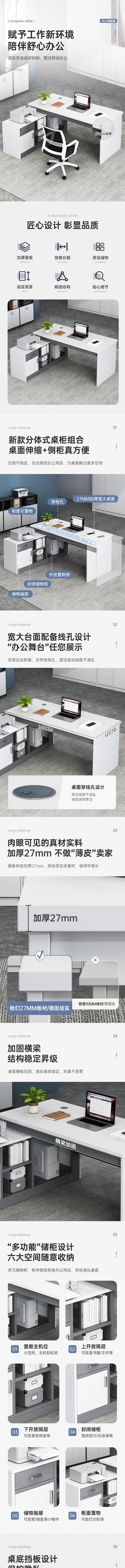 荣将简约现代职员办公桌电脑桌工作台员工工位办公室1.4米桌+侧柜