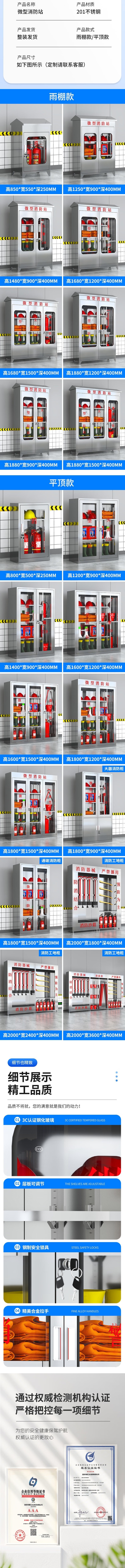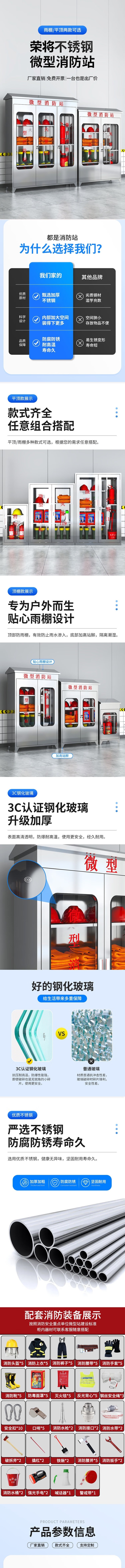 荣将不锈钢消防柜微型消防站全套消防器材应急物资柜展示箱含3C器材