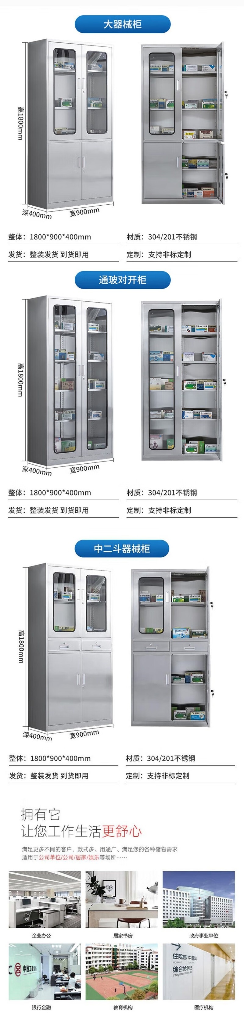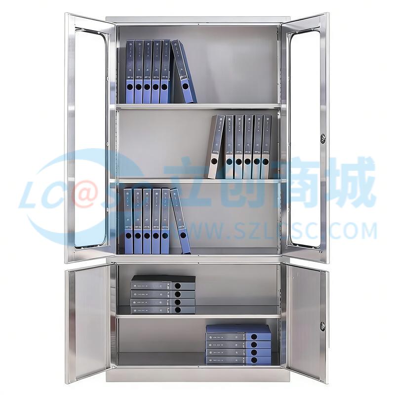 荣将201不锈钢文件柜办公资料柜档案柜凭证柜带锁玻璃储物柜 201大器