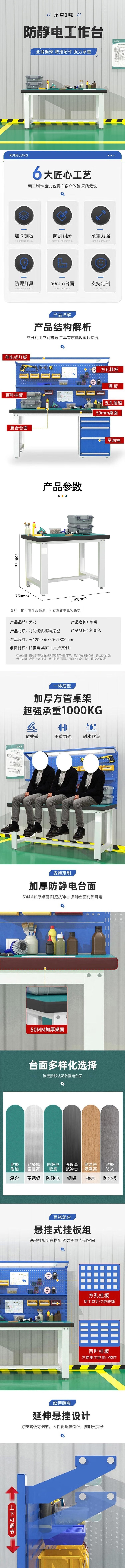 荣将防静电工作台重型钳工维修操作台桌车间流水线实验室电子厂工具桌
