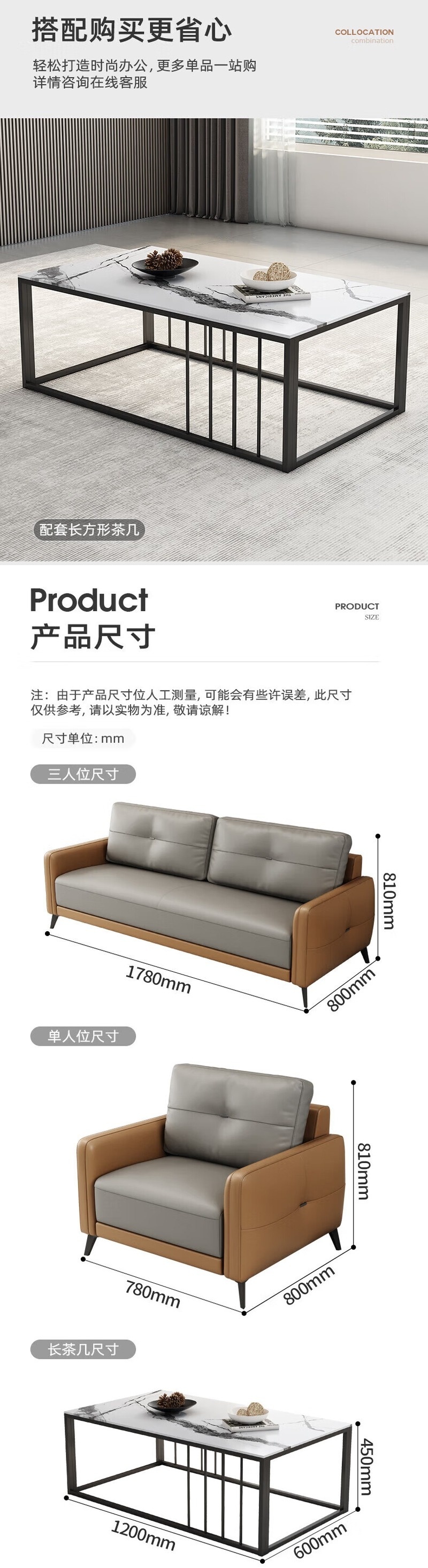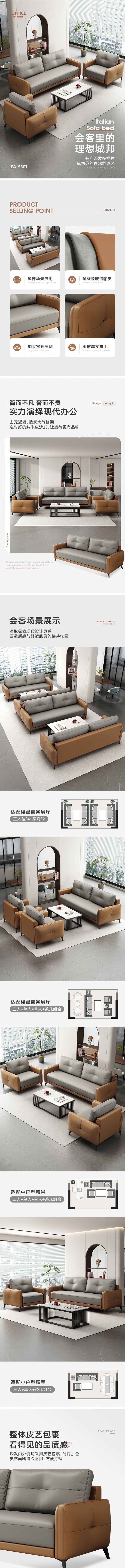 荣将办公沙发商务接待室会客区洽谈沙发皮艺沙发西皮乳胶三人位