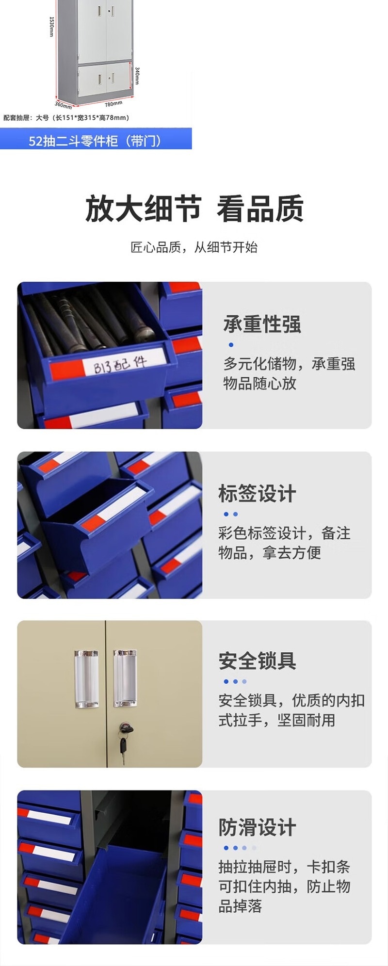 荣将零件柜 抽屉式电子元器件存储柜零件盒存放柜 100抽无门