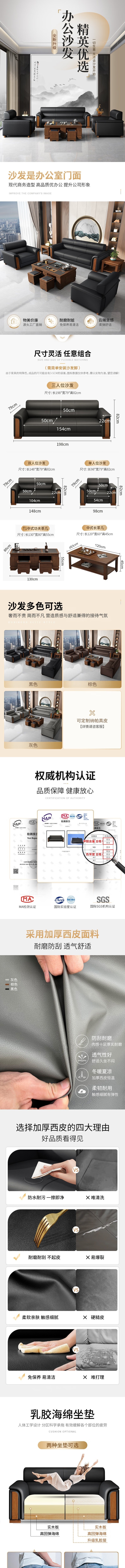 荣将办公沙发商务接待室会客区洽谈沙发茶几简约皮艺沙发茶几组合