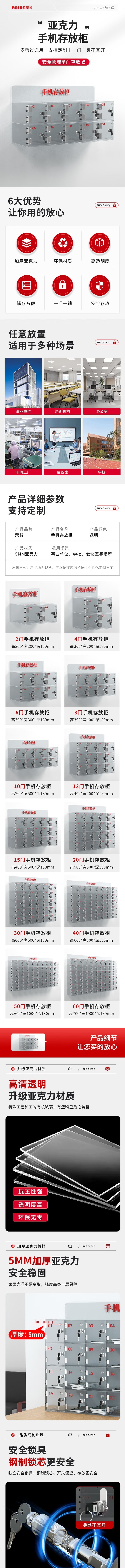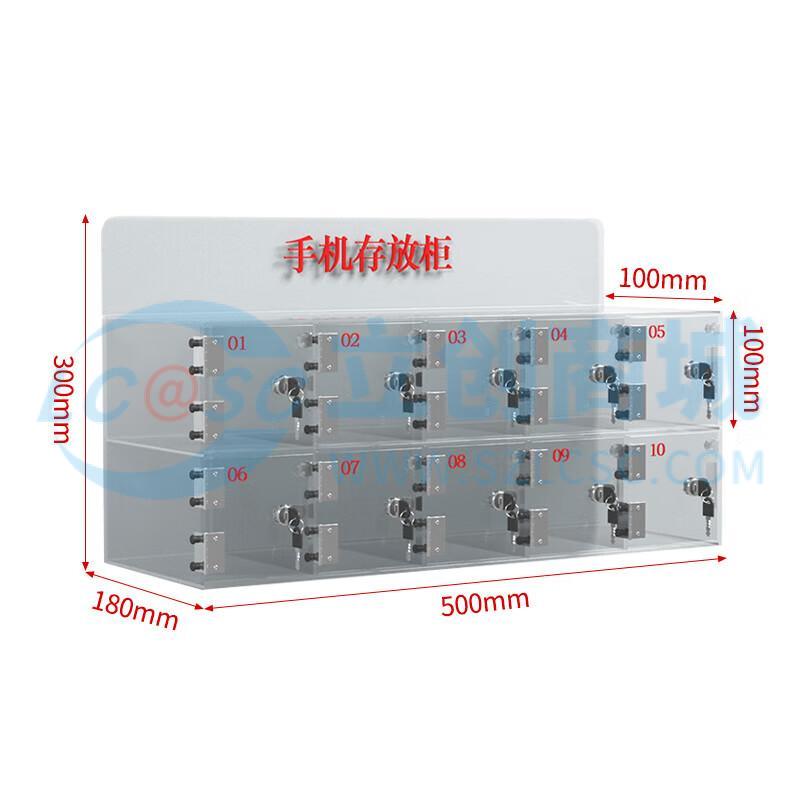 荣将亚克力手机存放柜保管柜可挂墙收纳箱火种箱带锁透明存放箱10门