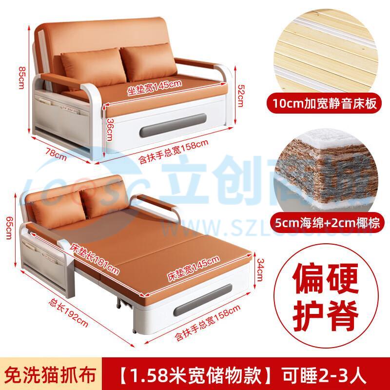 荣将沙发床垫折叠款坐卧一体科技布午睡抽拉经济型储物椰棕1.58米