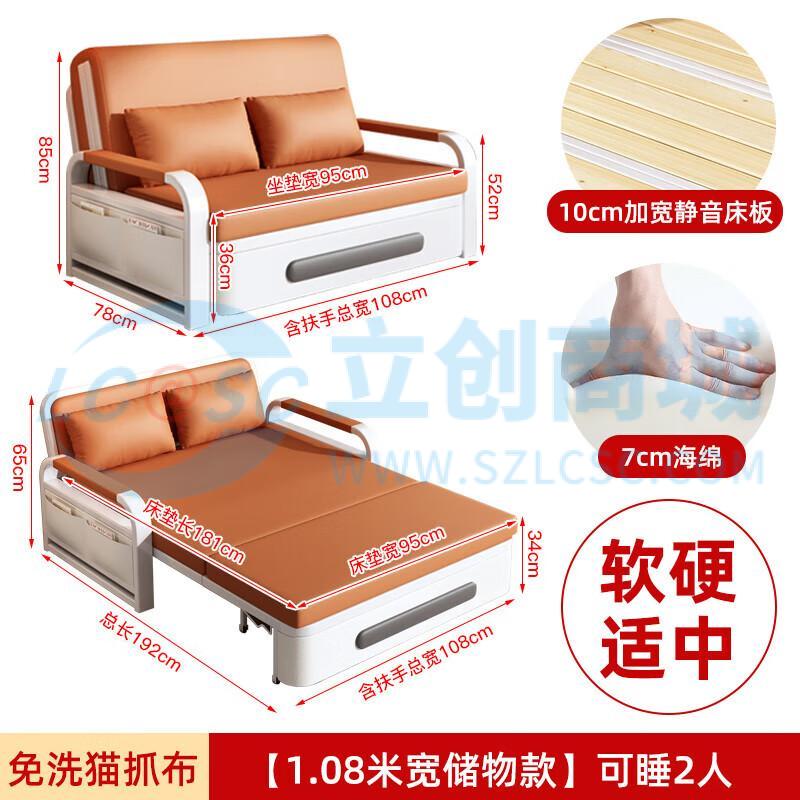 荣将沙发床垫折叠款坐卧一体科技布午睡抽拉经济型储物海绵1.08米