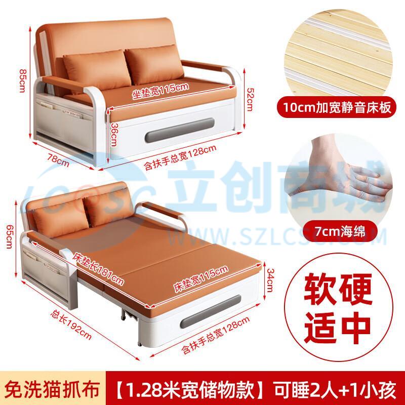 荣将沙发床垫折叠款坐卧一体科技布午睡抽拉经济型储物海绵1.28米