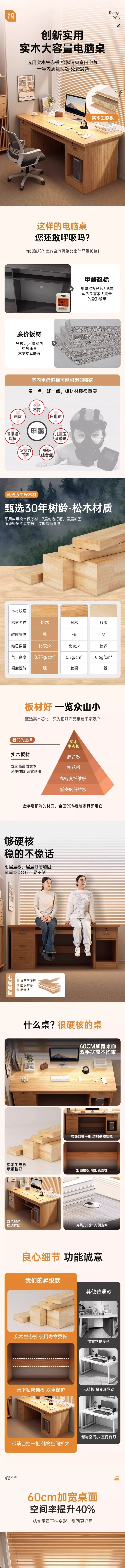荣将实木书桌电脑桌办公桌家用卧室台式简约学习桌1.2米天辰灰色三抽