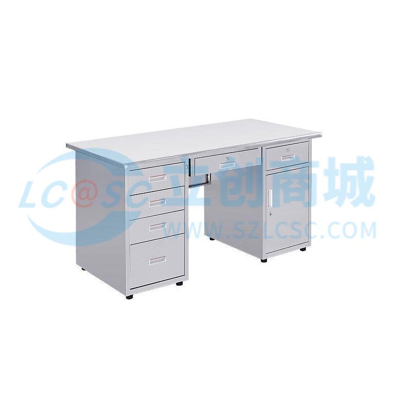 荣将304不锈钢办公桌电脑桌带抽屉实验室桌1.6米五斗一门中抽款