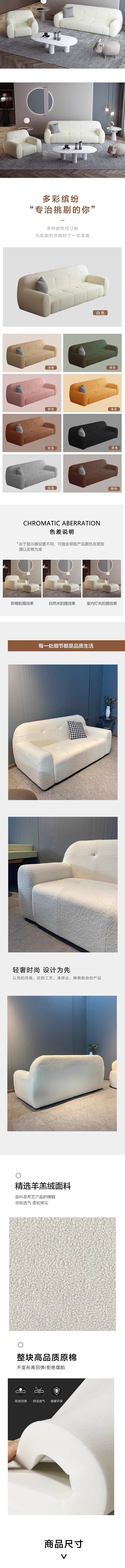 荣将布艺沙发公寓出租屋小户型沙发客厅羊羔绒沙发直排白色三人位沙发