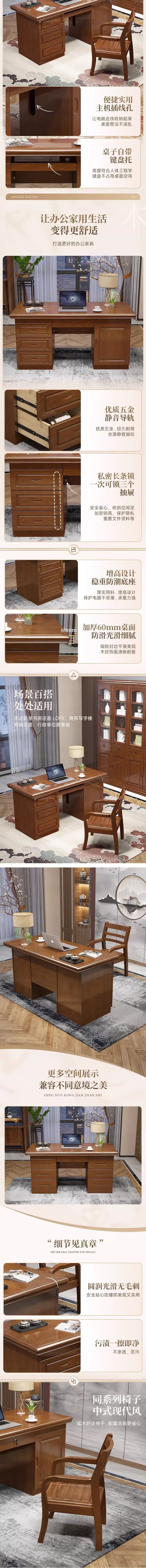 荣将中式实木办公桌办公室桌椅橡胶木书桌电脑桌学习写字桌1.6m胡桃色