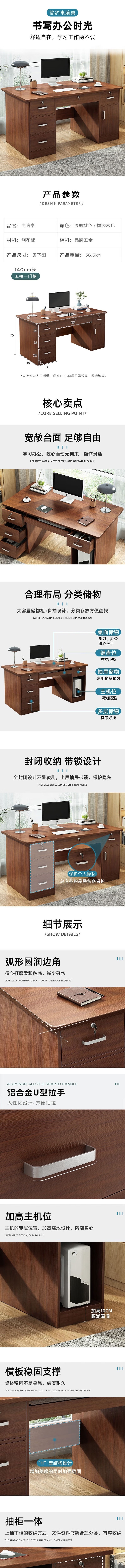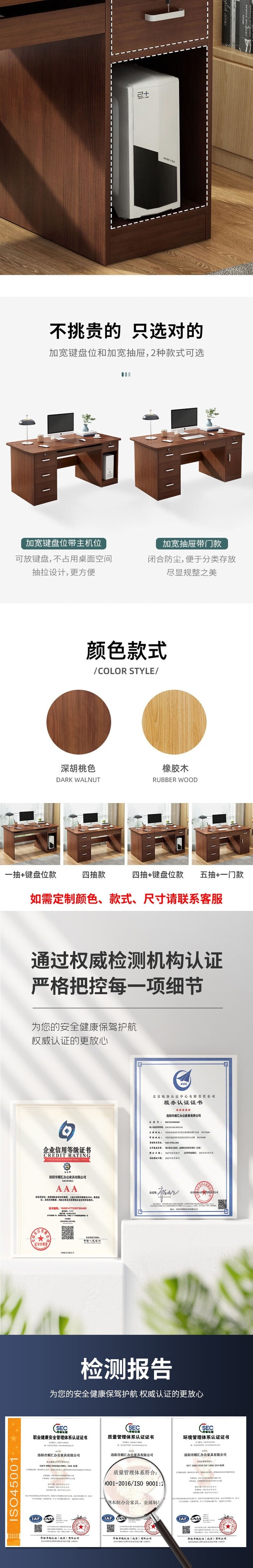 荣将办公桌台式电脑桌职员工办公室工位写字桌1.4米五抽一门含椅