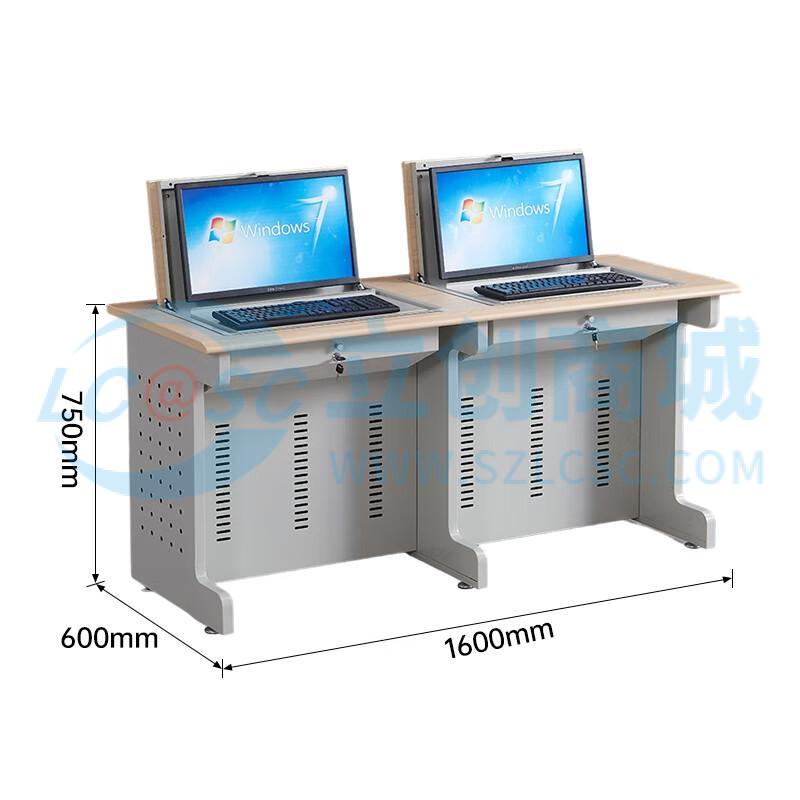 荣将翻转桌电脑桌多媒体教室电脑培训桌学习办公桌 双人位1.6米