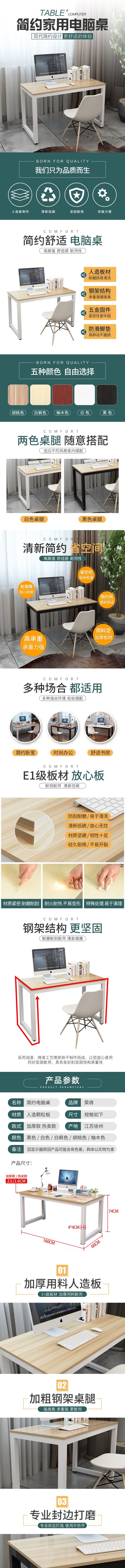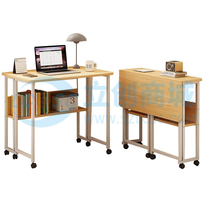 荣将折叠钢木电脑桌台式书桌家用简约办公桌卧室写字书架款0.8米桌