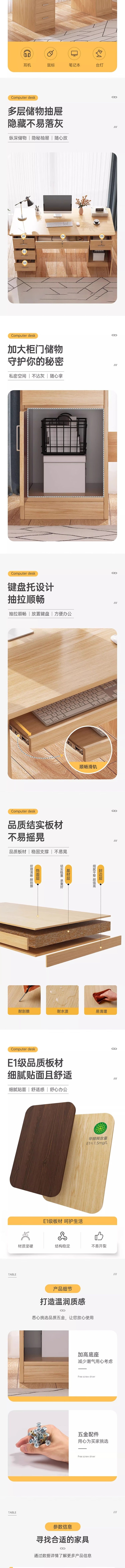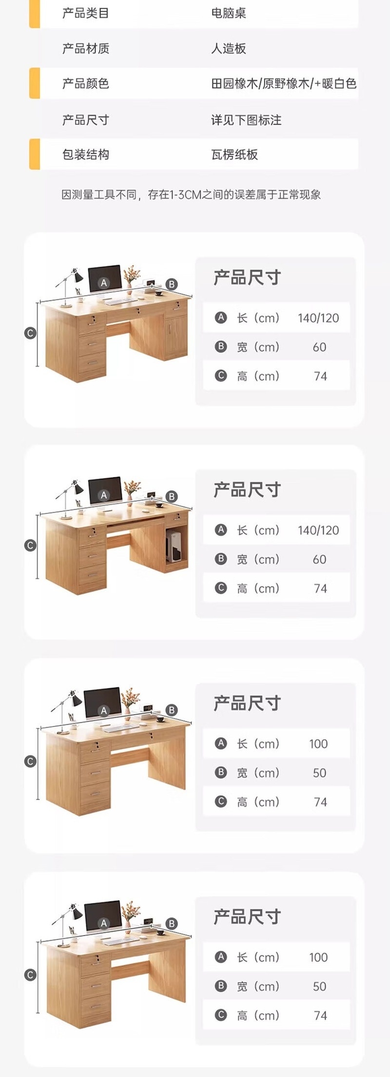 荣将工位办公桌工作台简约现代单人书桌电脑桌台式桌四抽田园橡木色1m
