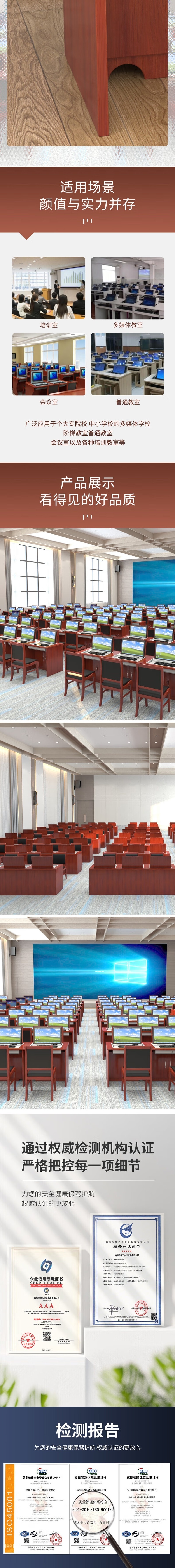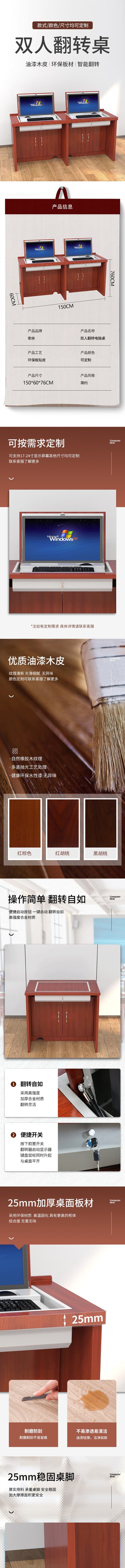 荣将翻转桌多媒体教室电脑培训桌学习办公桌 双人位1.5米含椅