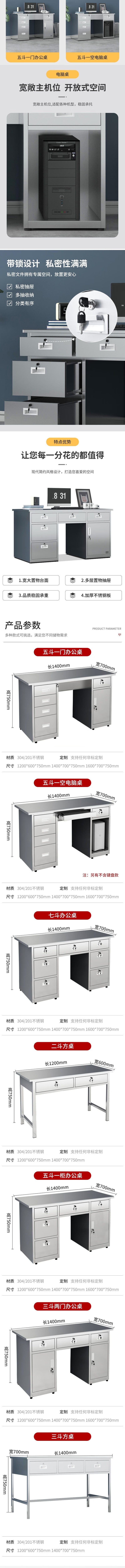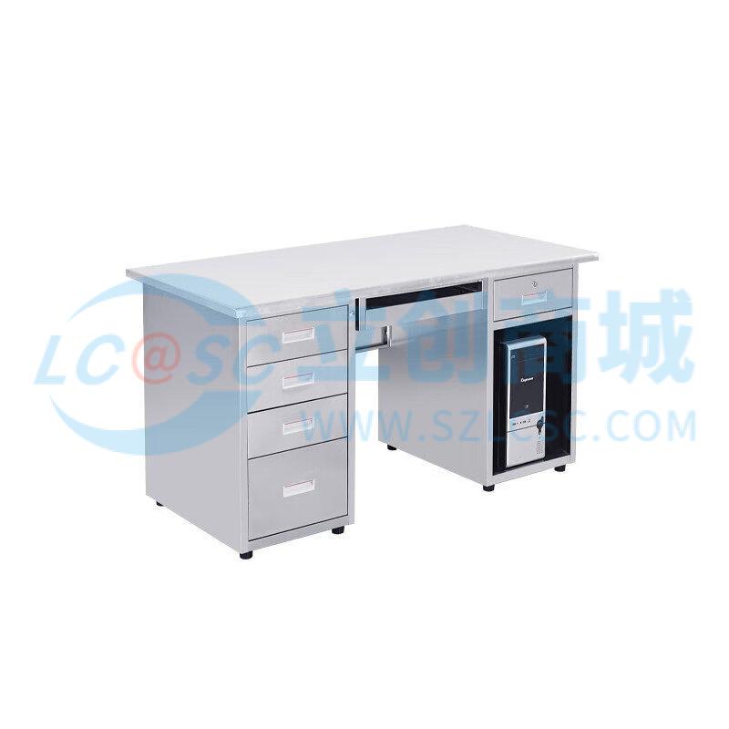 荣将304不锈钢办公桌电脑桌带抽屉1.2米五斗一空带键盘托