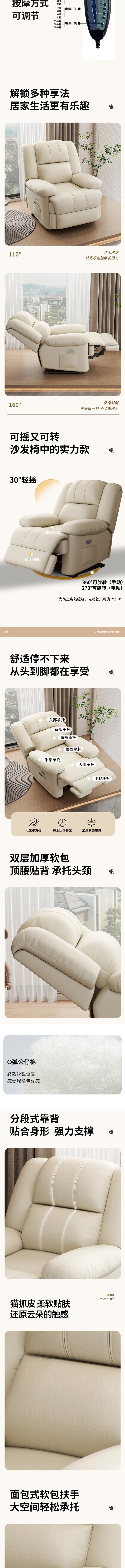荣将电动多功能单人沙发椅客厅太空头等沙发舱可睡可躺按摩懒人摇躺椅
