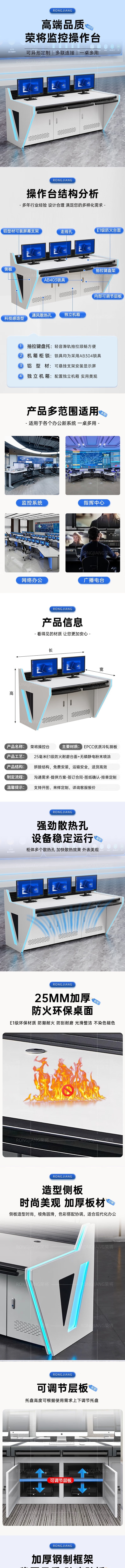 荣将监控台操作台指挥中心中控台调度台工作台五联操作台412*95*95cm