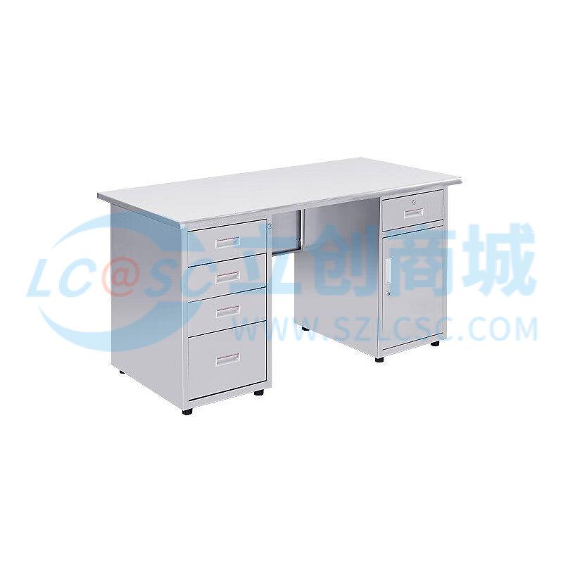 荣将304不锈钢办公桌电脑桌带抽屉车间实验室桌子1.2米五斗一门