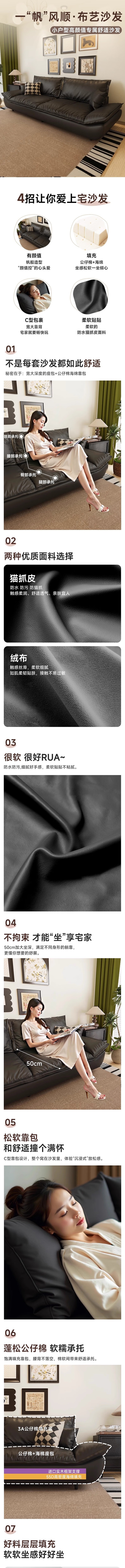 荣将奶油风沙发帆船客厅直排沙发大坐深小户型 猫抓布双人位 米白色