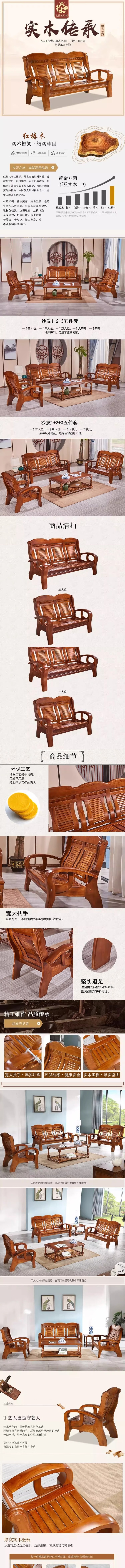 荣将实木沙发客厅木制沙发简约中式办公沙发接待沙发红椿木沙发双人位