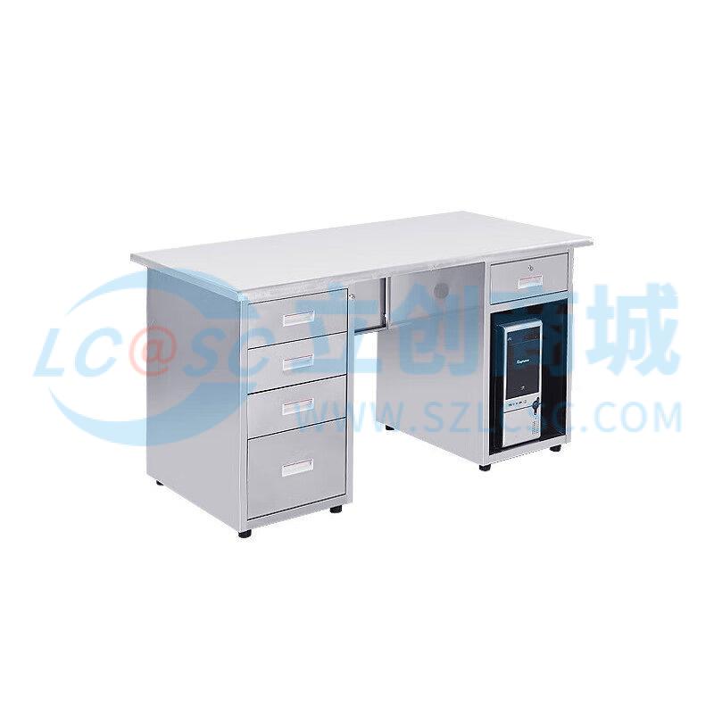 荣将201不锈钢办公桌电脑桌带抽屉车间实验室桌子1.4米五斗一空