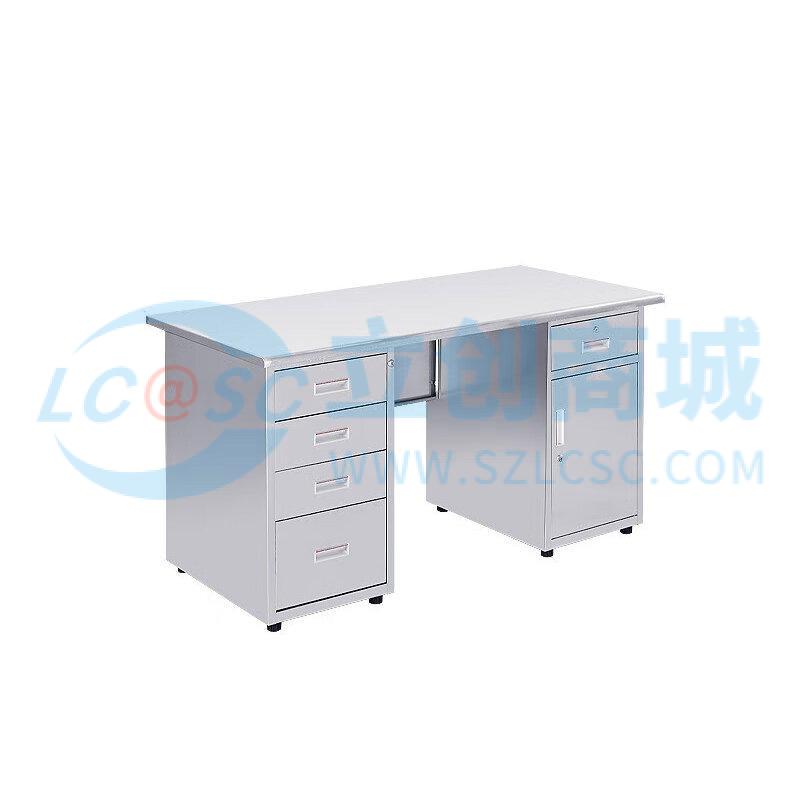 荣将304不锈钢办公桌电脑桌带抽屉车间实验室桌子1.4米五斗一门