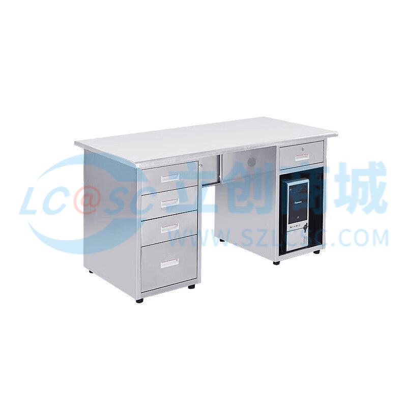 荣将201不锈钢办公桌电脑桌带抽屉车间实验室桌子1.2米五斗一空