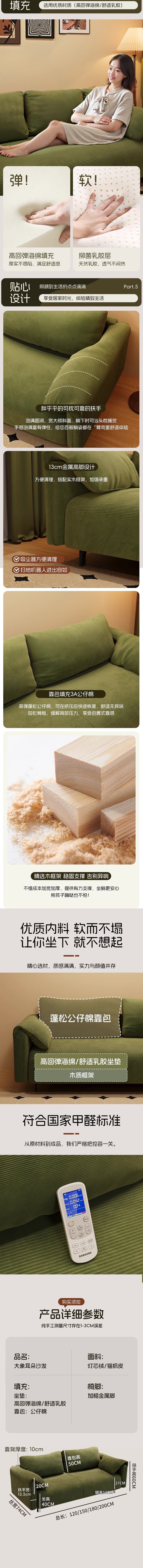 荣将布艺沙发小户型休闲沙发奶油风卧室懒人沙发麂皮绒双人位 米白色