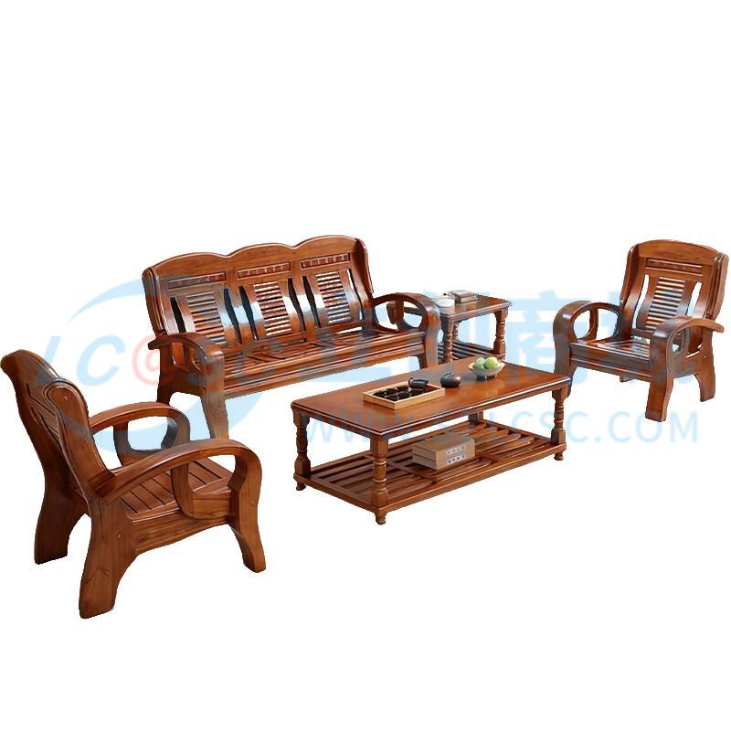 荣将实木沙发客厅木制沙发简约中式办公沙发会客接待沙发茶几组合