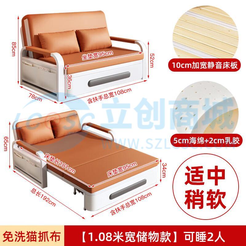 荣将沙发床垫折叠款坐卧一体科技布午睡抽拉经济型储物乳胶1.08米