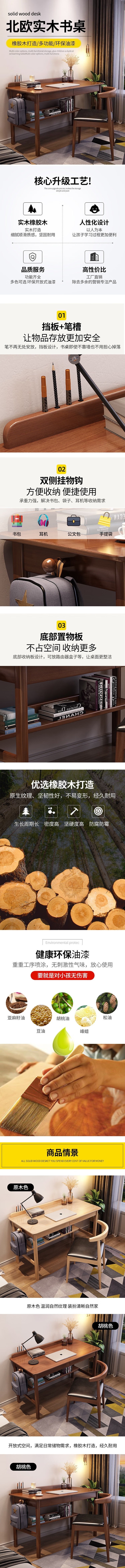 荣将简约实木书桌家用办公桌写字桌学习桌电脑桌卧室房间1米单桌