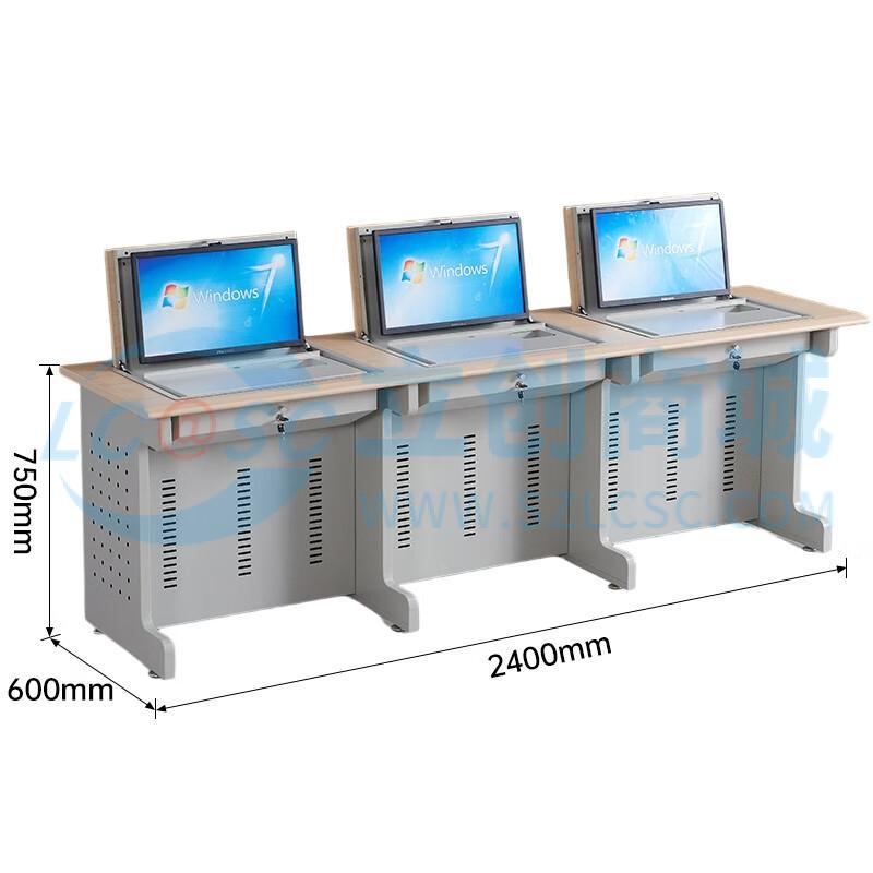荣将翻转桌电脑桌多媒体教室电脑培训桌学习办公桌 三人位