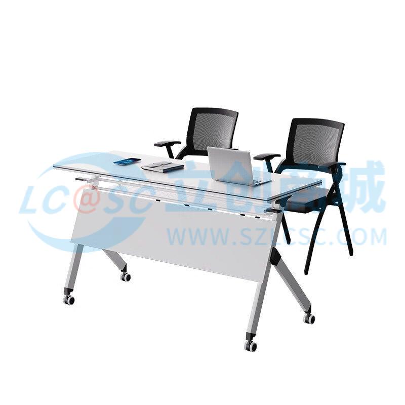 荣将折叠会议桌培训桌椅组合双人课桌带轮可移动办公桌1.6*0.6米含2椅