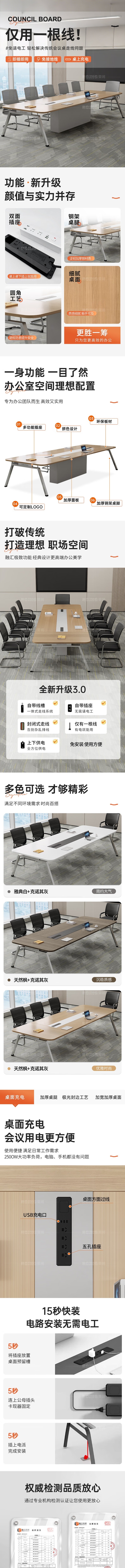 荣将会议桌长桌现代简约洽谈培训桌椅组合3.2*1.4米会议桌+12椅