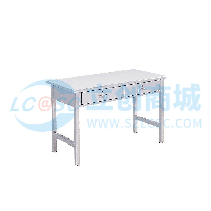 荣将201不锈钢办公桌电脑桌带抽屉车间实验室桌子1.4米二斗方桌
