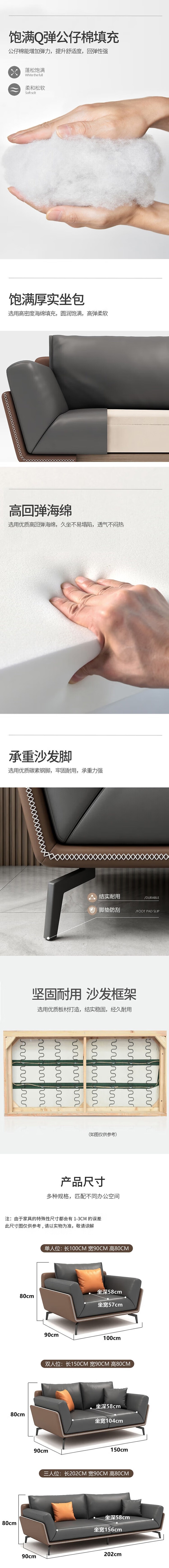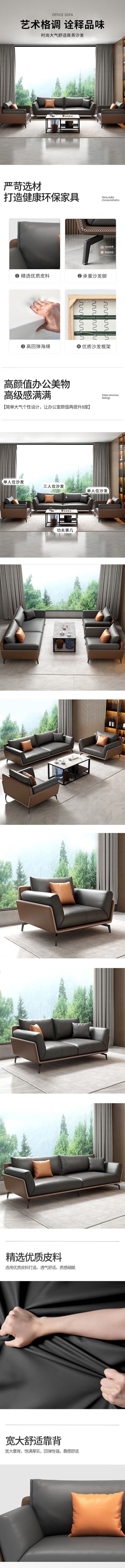 荣将办公室沙发简约商务接待沙发会客区洽谈休闲沙发组合 3+1+1+长几