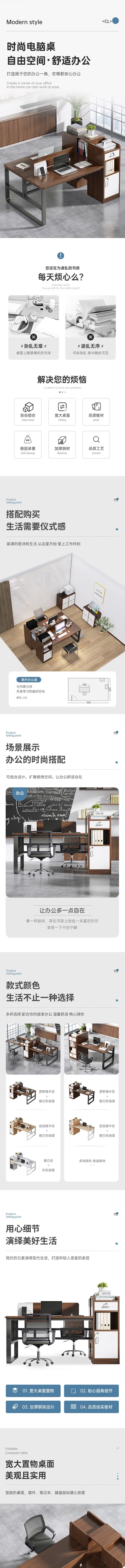 荣将一体式简约现代电脑台式办公书桌工作台学生写字桌双人1.5米深棕