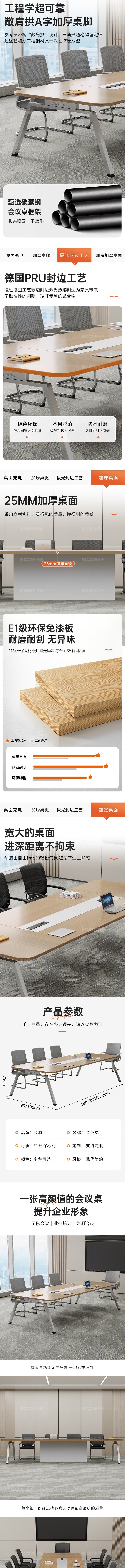 荣将会议桌长桌现代简约洽谈培训桌椅组合1.8*0.9米会议桌+4椅