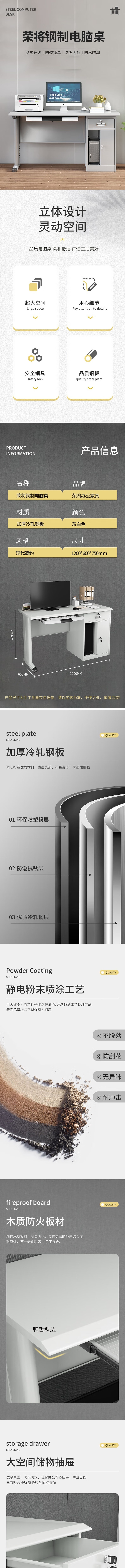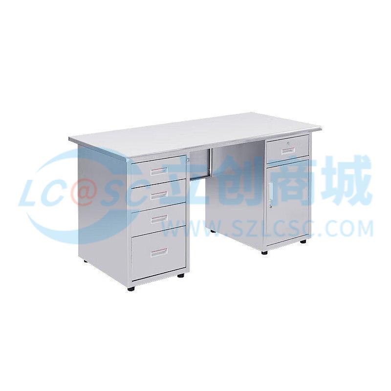 荣将201不锈钢办公桌电脑桌带抽屉车间实验室桌子1.4米五斗一门