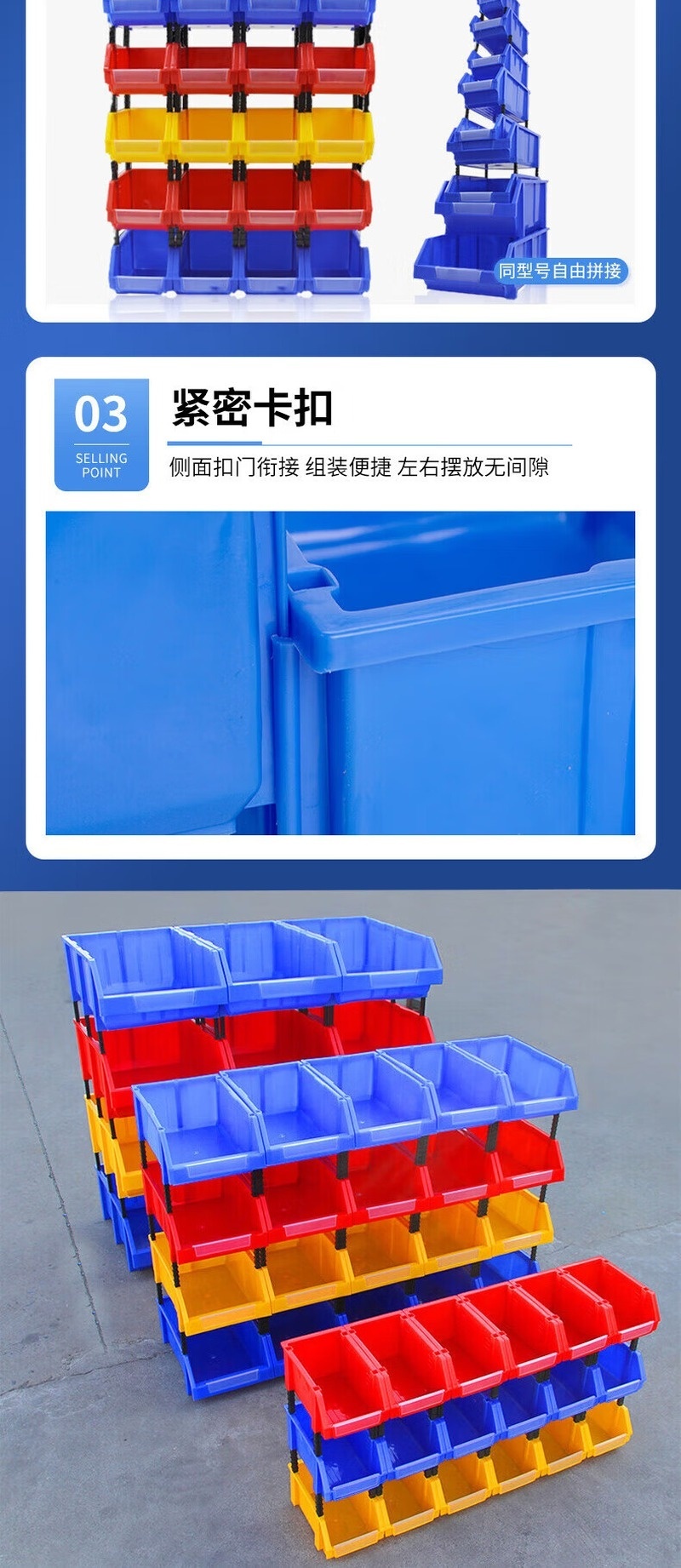 荣将货架零件盒摆丝工具盒组合式货架零件盒红色520*250*190mm10个