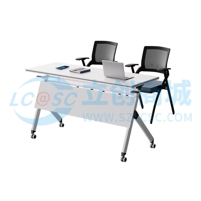 荣将折叠会议桌培训桌椅组合双人课桌带轮可移动办公桌1.6*0.5米含2椅