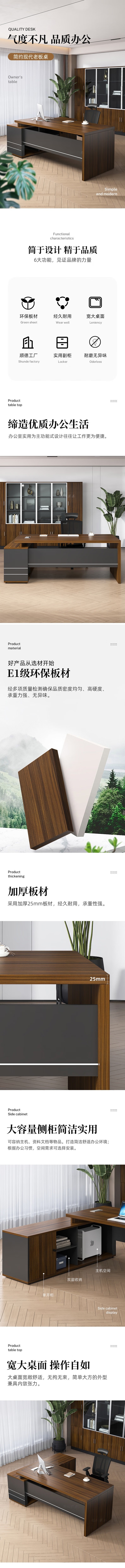 荣将办公桌老板桌现代简约单人带柜大班台办公室经理主管桌1.6米含柜