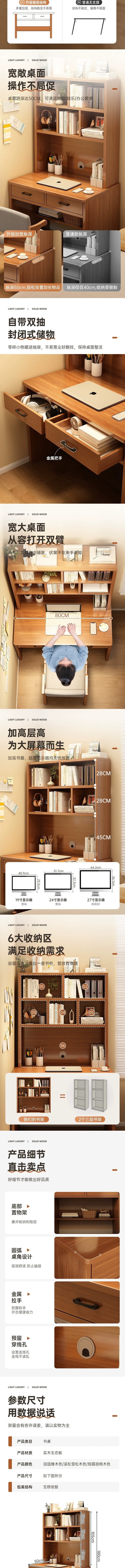荣将实木书桌书架一体式办公桌电脑桌家用工作台写字桌70cm雪松木色