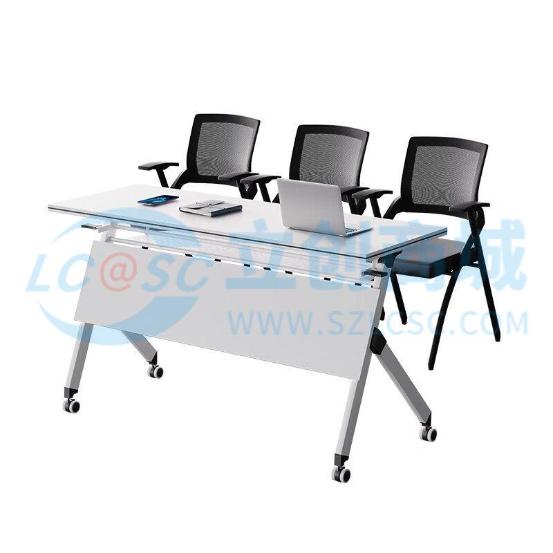 荣将折叠会议桌培训桌椅组合三人课桌带轮可移动办公桌1.8*0.4米含3椅