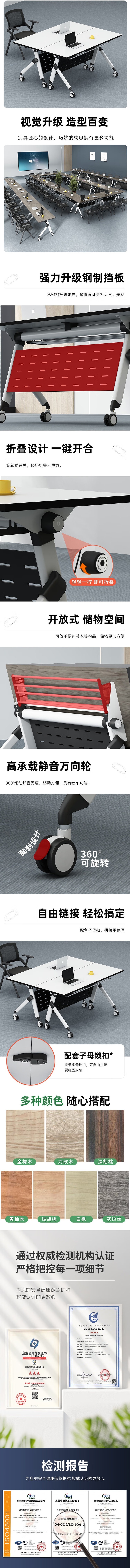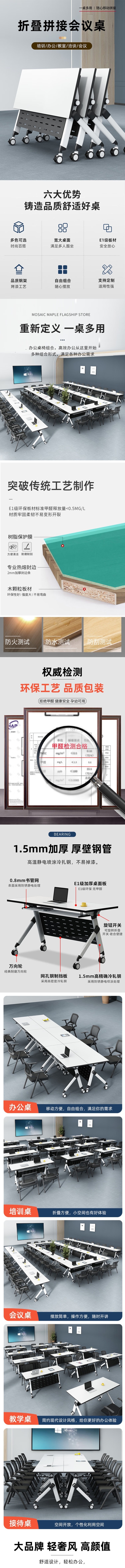 荣将折叠会议桌培训桌椅组合长方形学习桌移动办公桌140*40*75cm