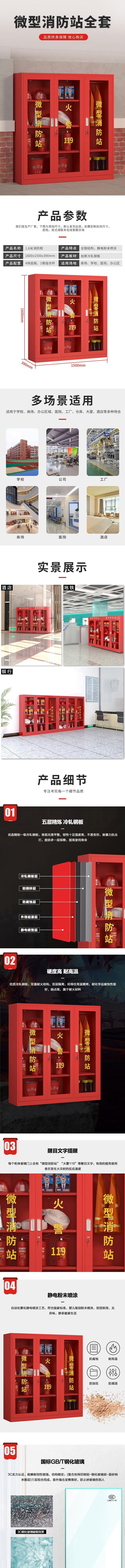 荣将消防柜微型消防站全套消防器材应急柜箱 高1600宽1500mm含5人器材