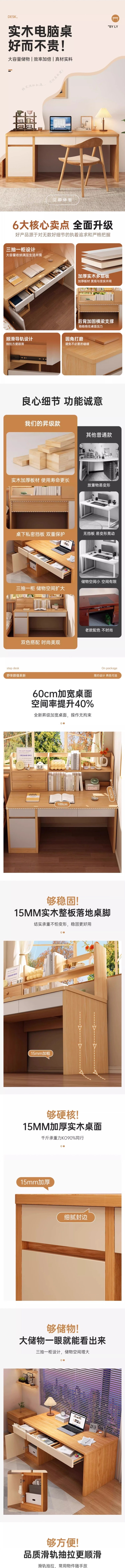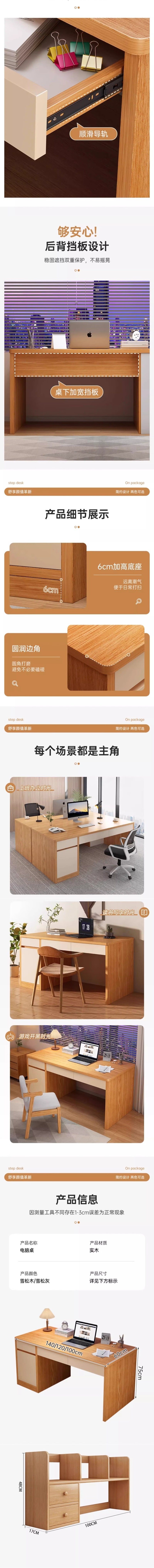 荣将实木书桌电脑桌办公桌家用卧室台式简约学习桌1米雪松木色桌+椅